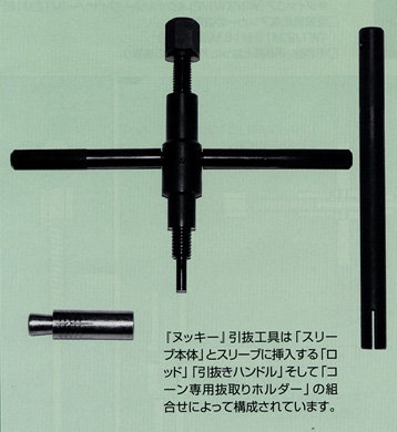 - 4.躯体の穴に残されたコーン は「専用抜取りホルダー」ではさみ取り、あとはブラシで穴中を清掃、モルタル、エポキシ樹脂 などを埋込み補修して完了です。